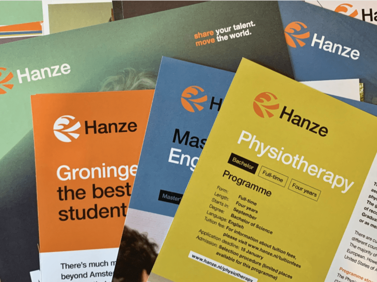 De Hanzehogeschool Groningen is naast opleidingsinstituut ook een kennisinstelling. Daarom is besloten zowel een naams- als huisstijlwijziging door te voeren. Op basis van een uitgevoerde impactanalyse is een plan van aanpak opgesteld waarmee binnen de gestelde projectduur voor het beschikbare budget alle ‘high impact’ huisstijldragers zijn aangepast. Denk hierbij aan de website, de gevelsigns, de bedrijfskleding en de diploma’s.