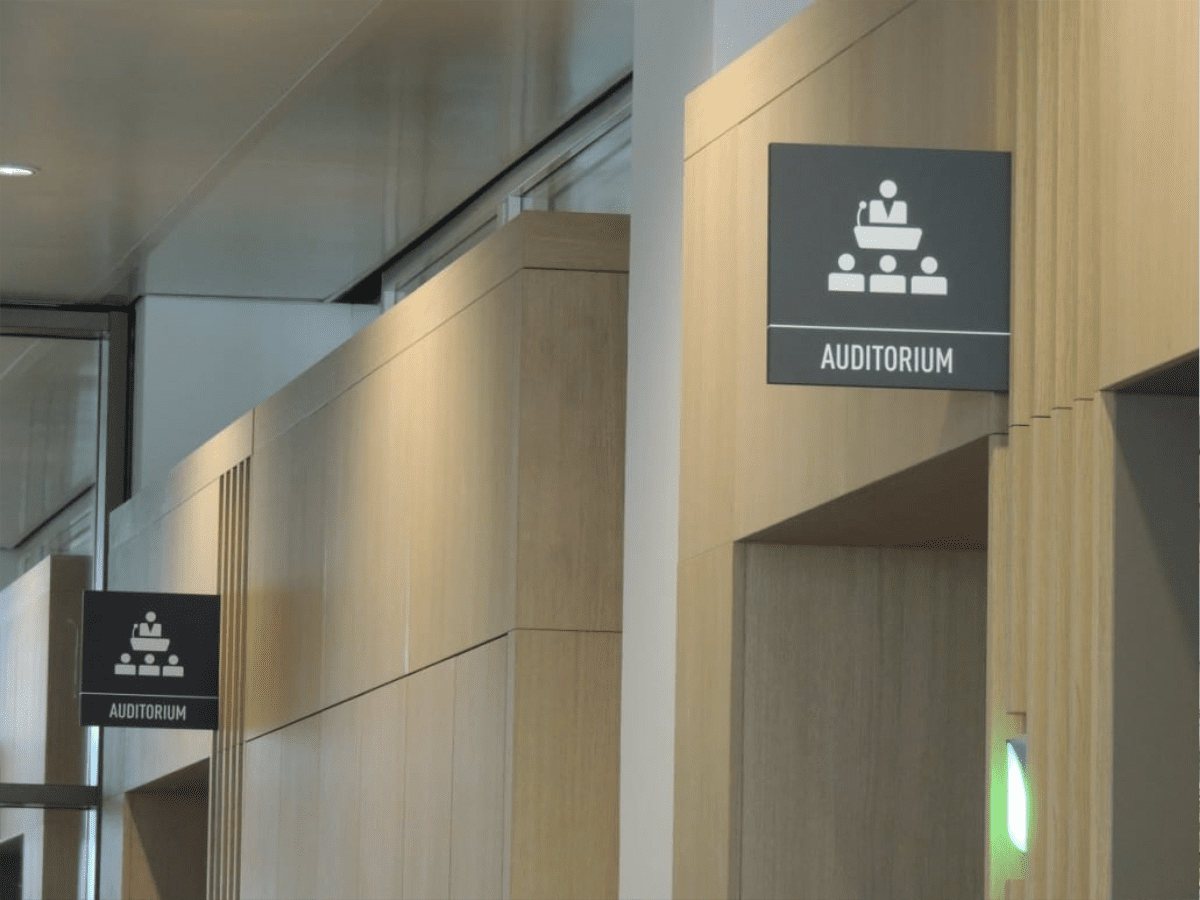 De bewegwijzering is vertaald naar een uniek grafisch en industrieel ontwerp. Het ontwerp is tot stand gekomen in nauw overleg met de interieurarchitect Fokkema & Partners.